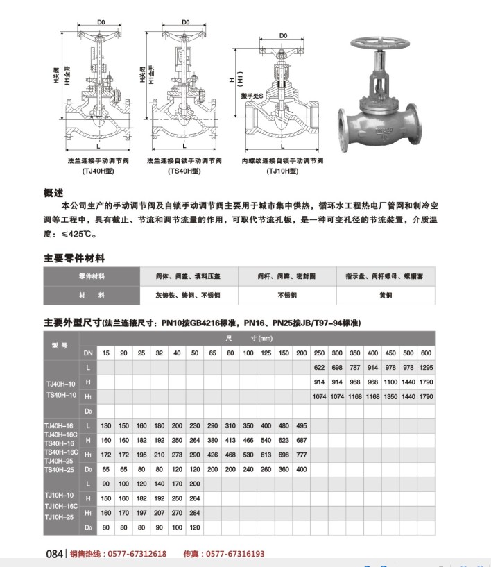 本手動(dòng)調(diào)節(jié)閥適用于公稱壓力≤1.6MPa和≤2.5MPa介質(zhì)溫度 1~200℃和≤350℃蒸汽水管路上作為調(diào)節(jié)流量之用。