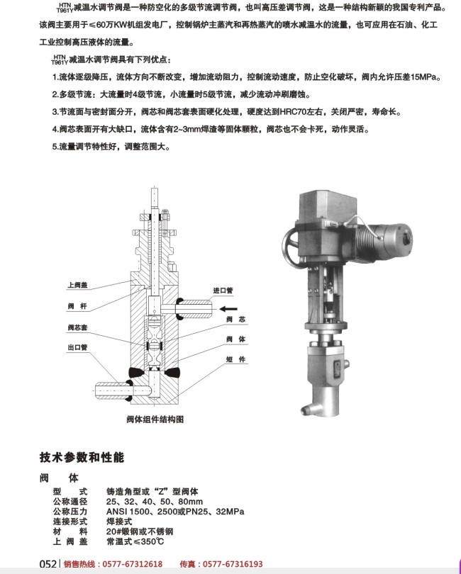 HTNT961Y減溫水調(diào)節(jié)閥具有以下優(yōu)點(diǎn):