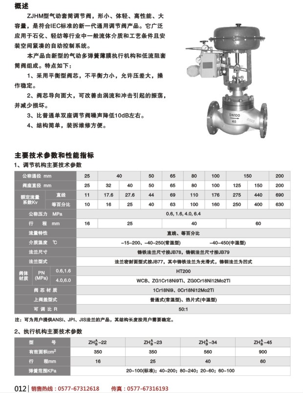 ZJHM氣動(dòng)套筒調(diào)節(jié)閥采用套筒導(dǎo)向,壓力平衡型雙密封面、單密封面結(jié)構(gòu),是一種力平衡的調(diào)節(jié)閥,閥體結(jié)構(gòu)緊湊,流體通道呈現(xiàn)S流線型。有點(diǎn)為壓降損失小流通量大,可調(diào)范圍廣,流量特性精度高。調(diào)節(jié)閥配用多彈簧式薄膜執(zhí)行機(jī)構(gòu),具有結(jié)構(gòu)小輸出力大,更適用于要求動(dòng)態(tài)穩(wěn)定性好,噪音低,空化/閃蒸等,高低溫,高壓差流體控制條件下使用。如果您還想了解其他氣動(dòng)調(diào)節(jié)閥系列產(chǎn)品請點(diǎn)擊:http://www.hpbtpnh.cn