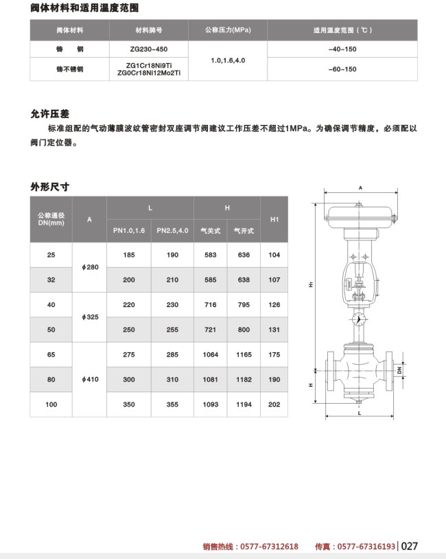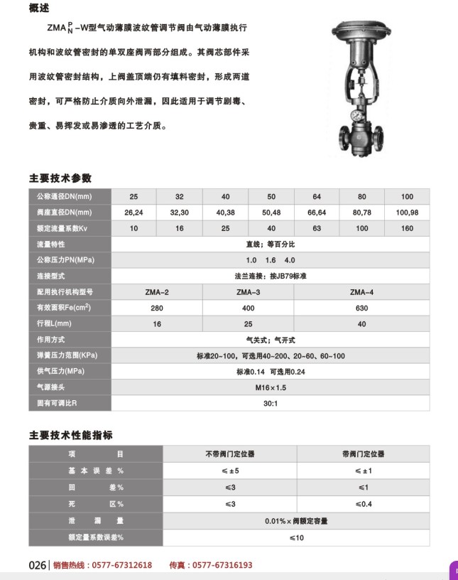 ZMAP N-W型氣動薄膜波紋管調(diào)節(jié)閥氣動薄膜執(zhí)行機構(gòu)和波紋管密封的單雙座閥兩部分組成。其閥芯部件采用波紋管密封機構(gòu),上閥蓋頂端仍有填料密封,形成兩道密封,可嚴格防止介質(zhì)向外泄露,因此適用于調(diào)節(jié)劇毒、貴重、易揮發(fā)或易滲透的工藝介質(zhì)。